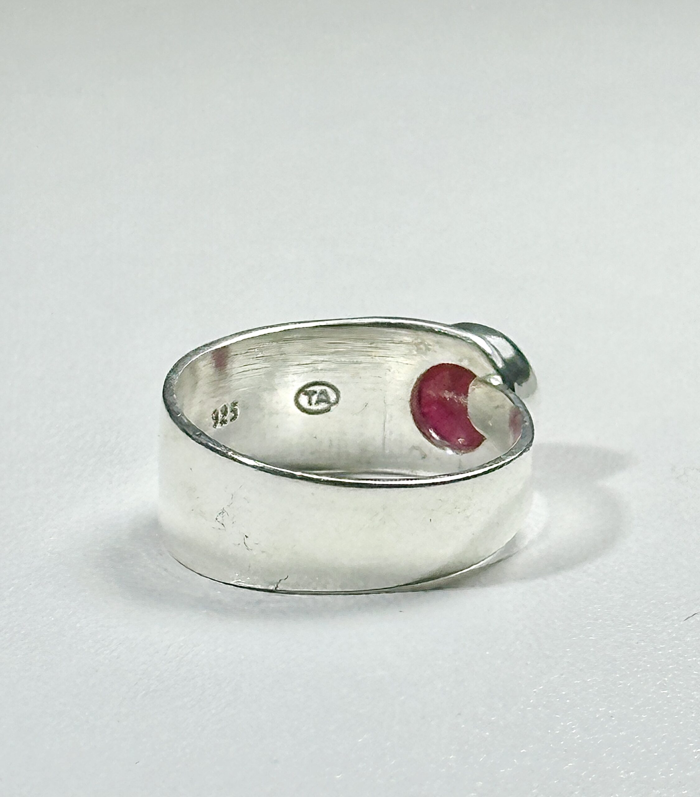 Anillo ajustable de Rubi en plata de primera ley 925 hecho a mano por artesanos, para mujer.