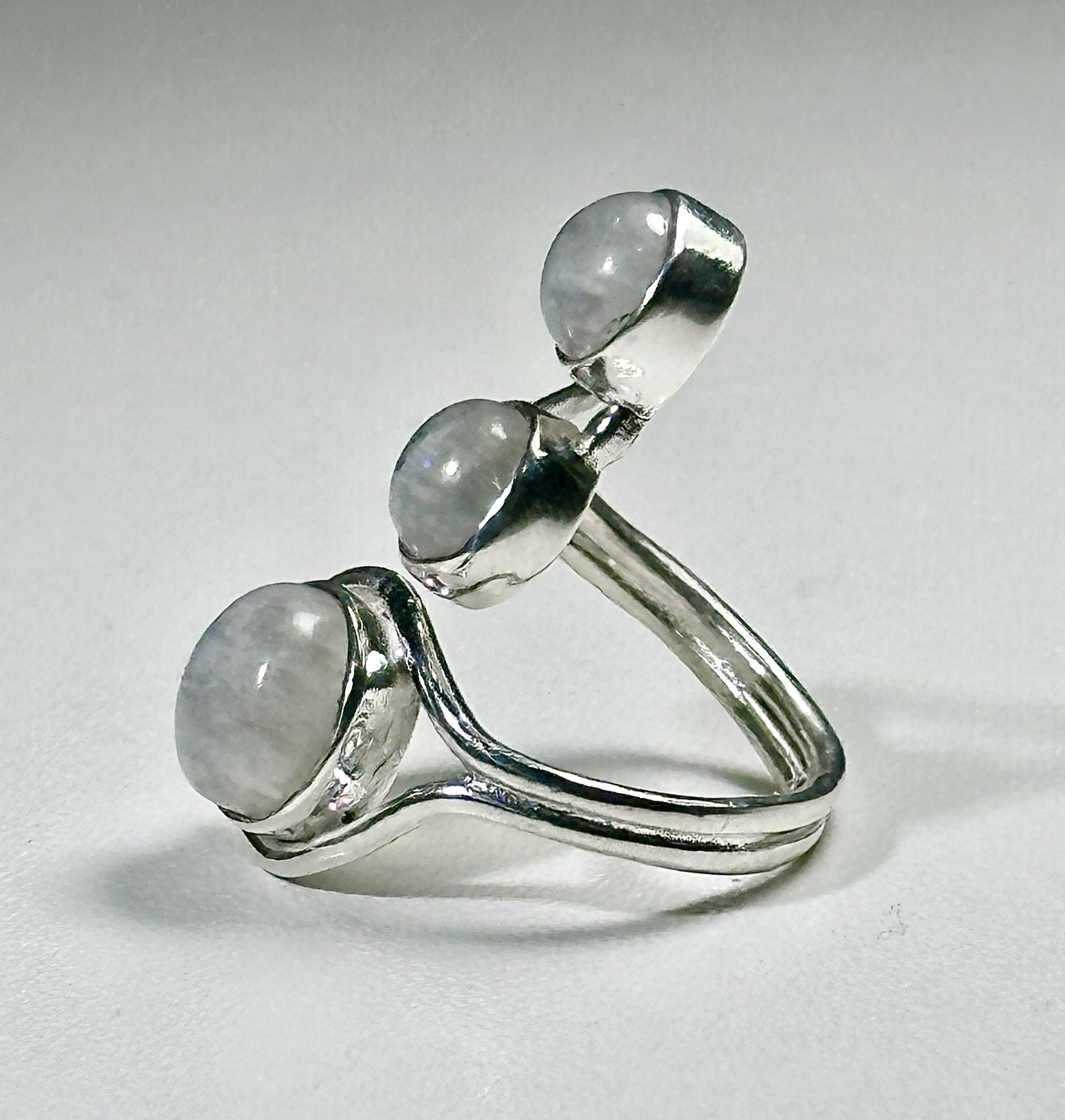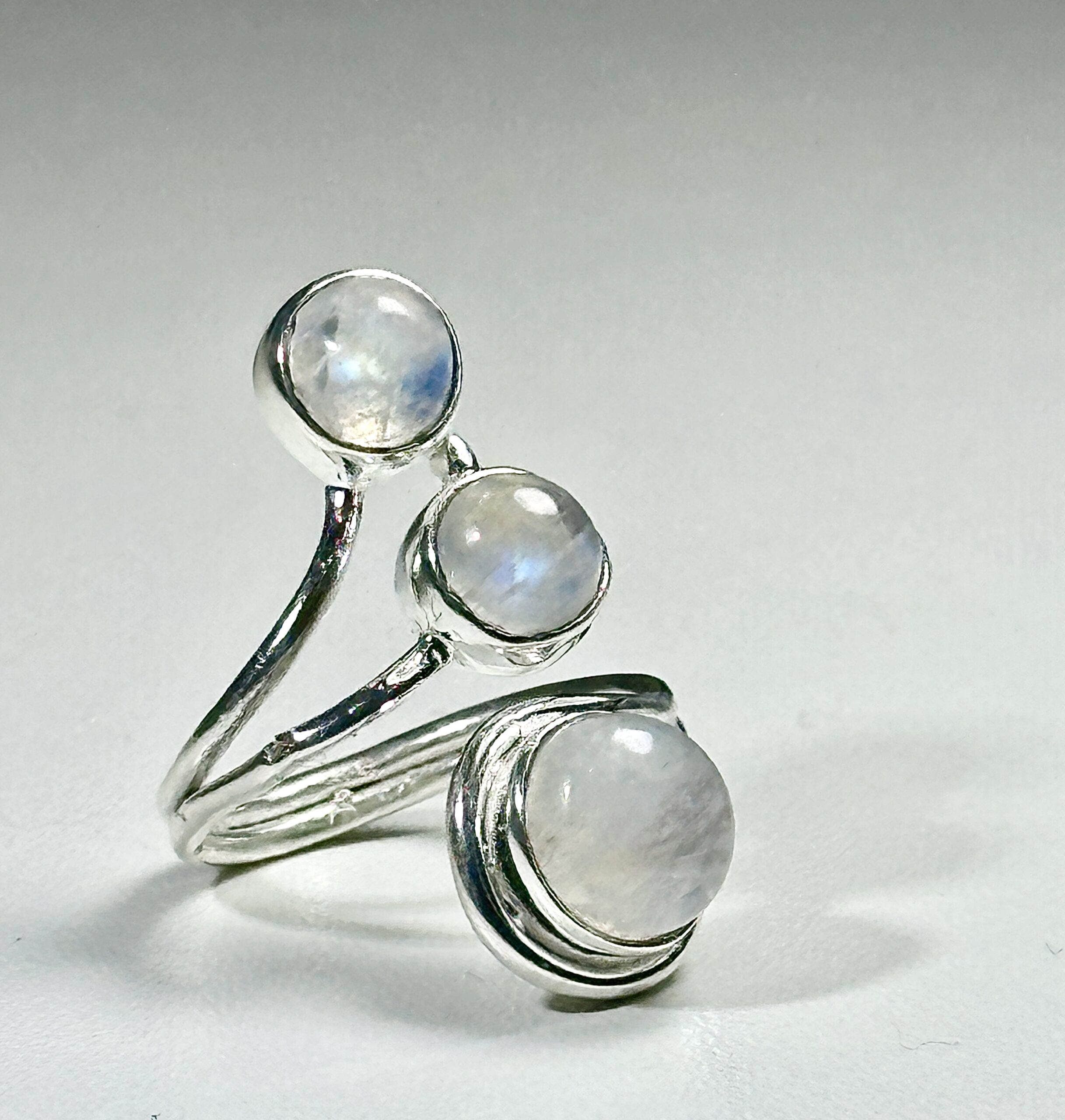 Anillo ajustable de Piedra Luna en plata de primera ley 925 para mujer, artesanos hechos a mano.